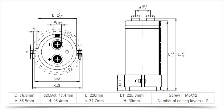 Dimension of 400V, 12000uF Bolted Electrolytic Capacitor